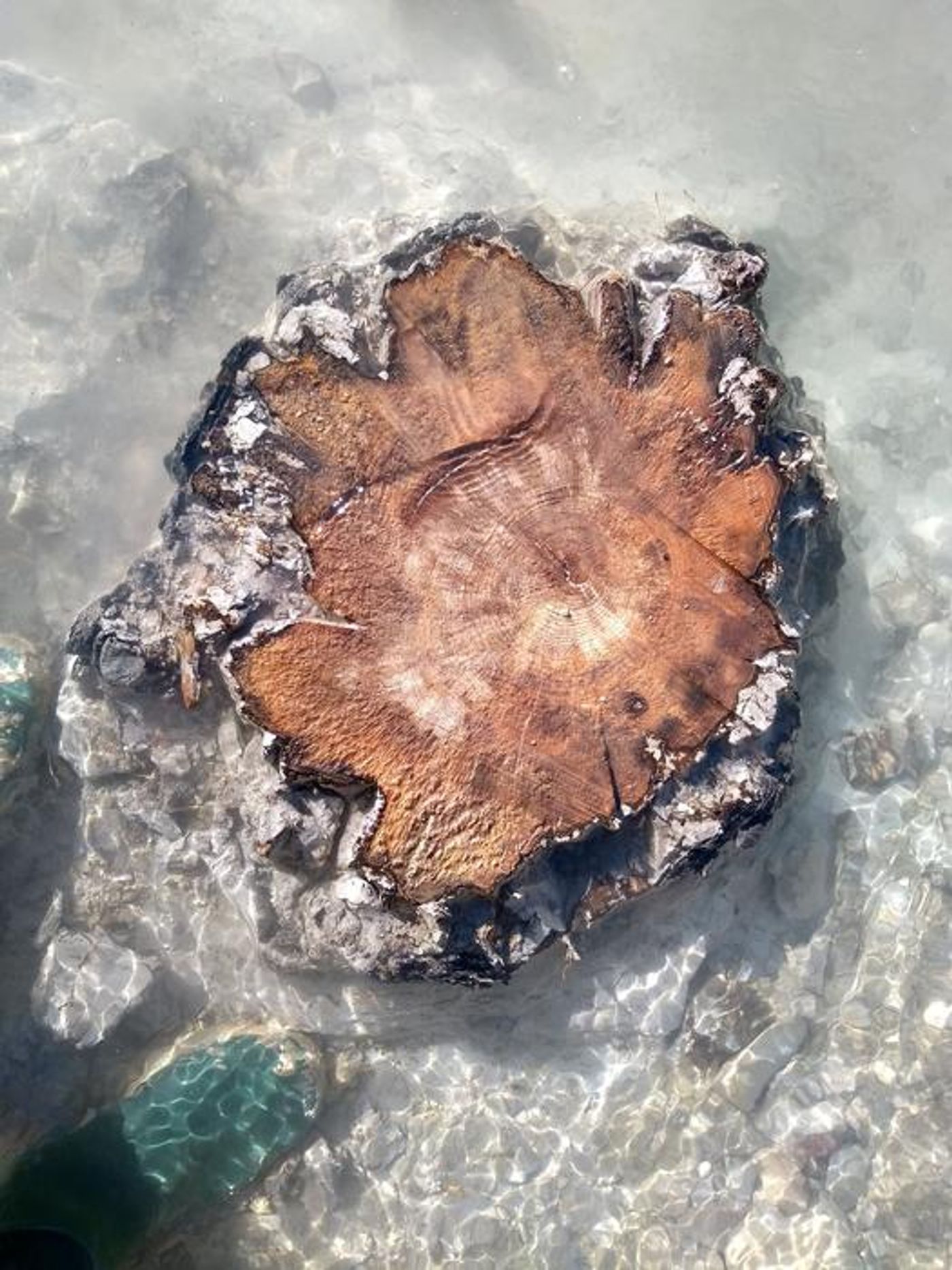 immagine degli anelli degli alberi all'interno di un albero subfossile sepolto nel fiume Drouzet